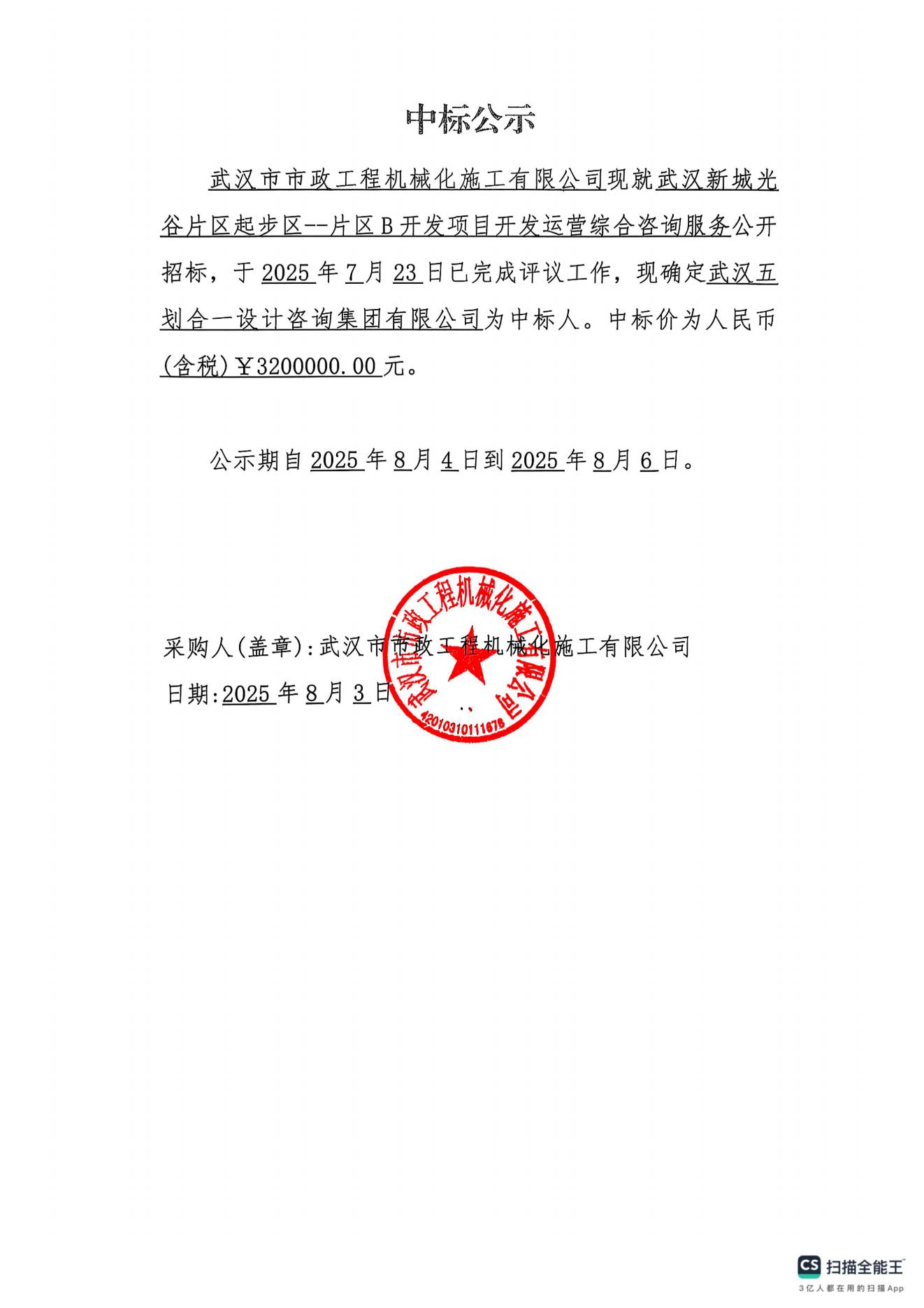 武漢新城光谷片區(qū)起步區(qū)--片區(qū)B開發(fā)項目開發(fā)運營綜合咨詢服務(wù)中標公示