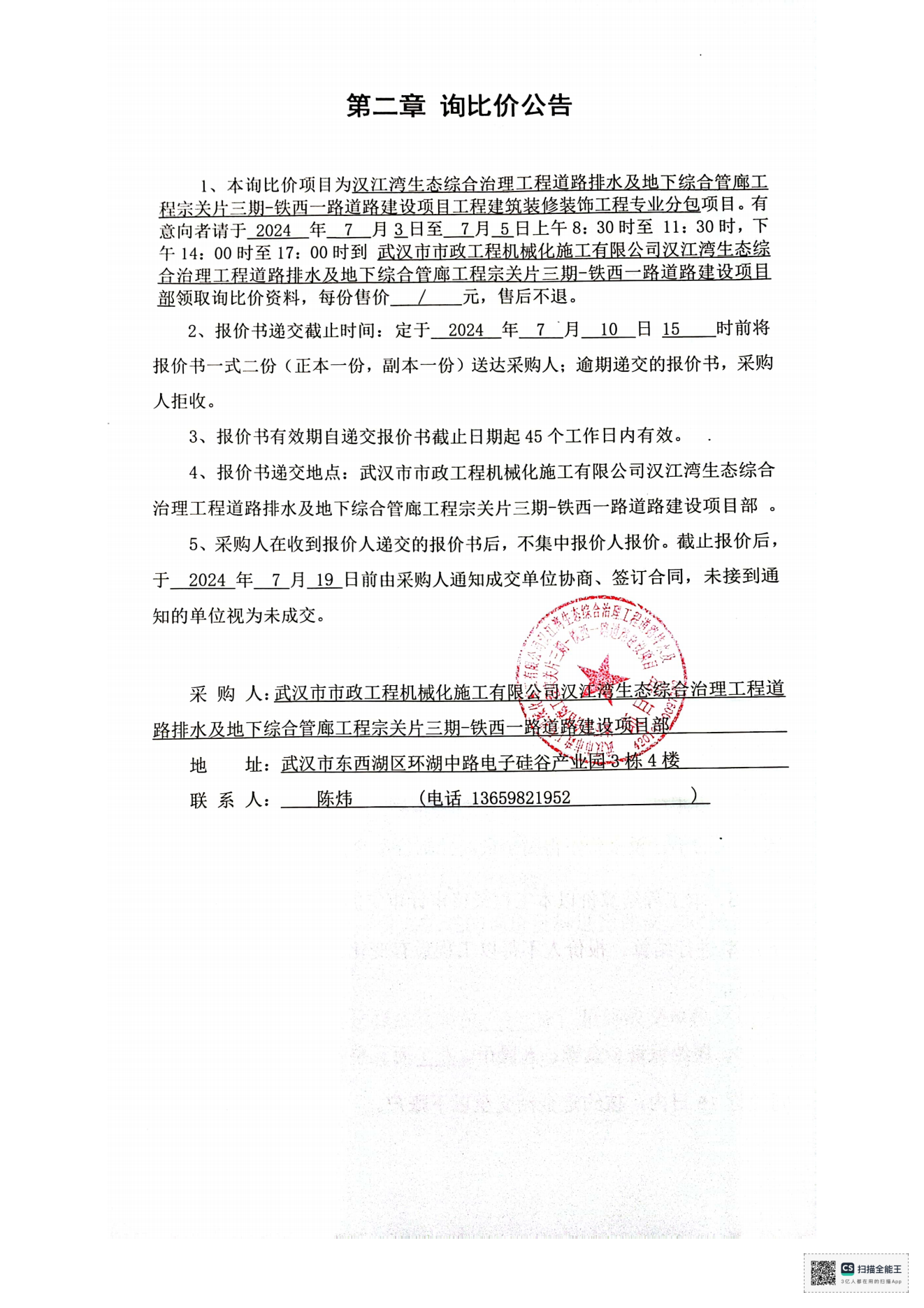漢江灣生態(tài)綜合治理工程道路排水及地下綜合管廊工程宗關(guān)片三期-鐵西一路道路建設(shè)項(xiàng)目工程建筑裝修裝飾工程專業(yè)分包詢價(jià)公告