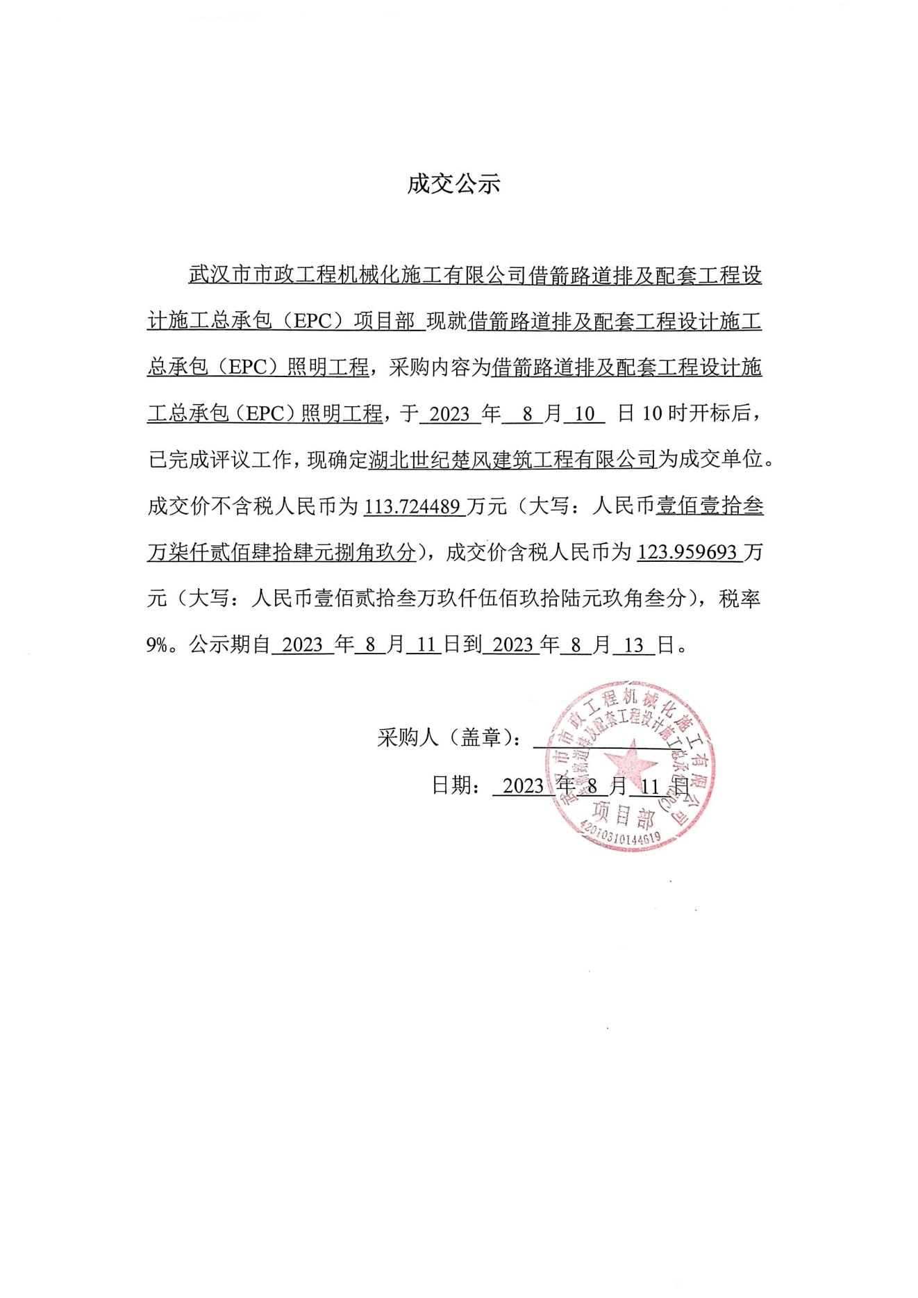 借箭路道排及配套工程設(shè)計(jì)施工總承包(EPC)照明工程成交公示