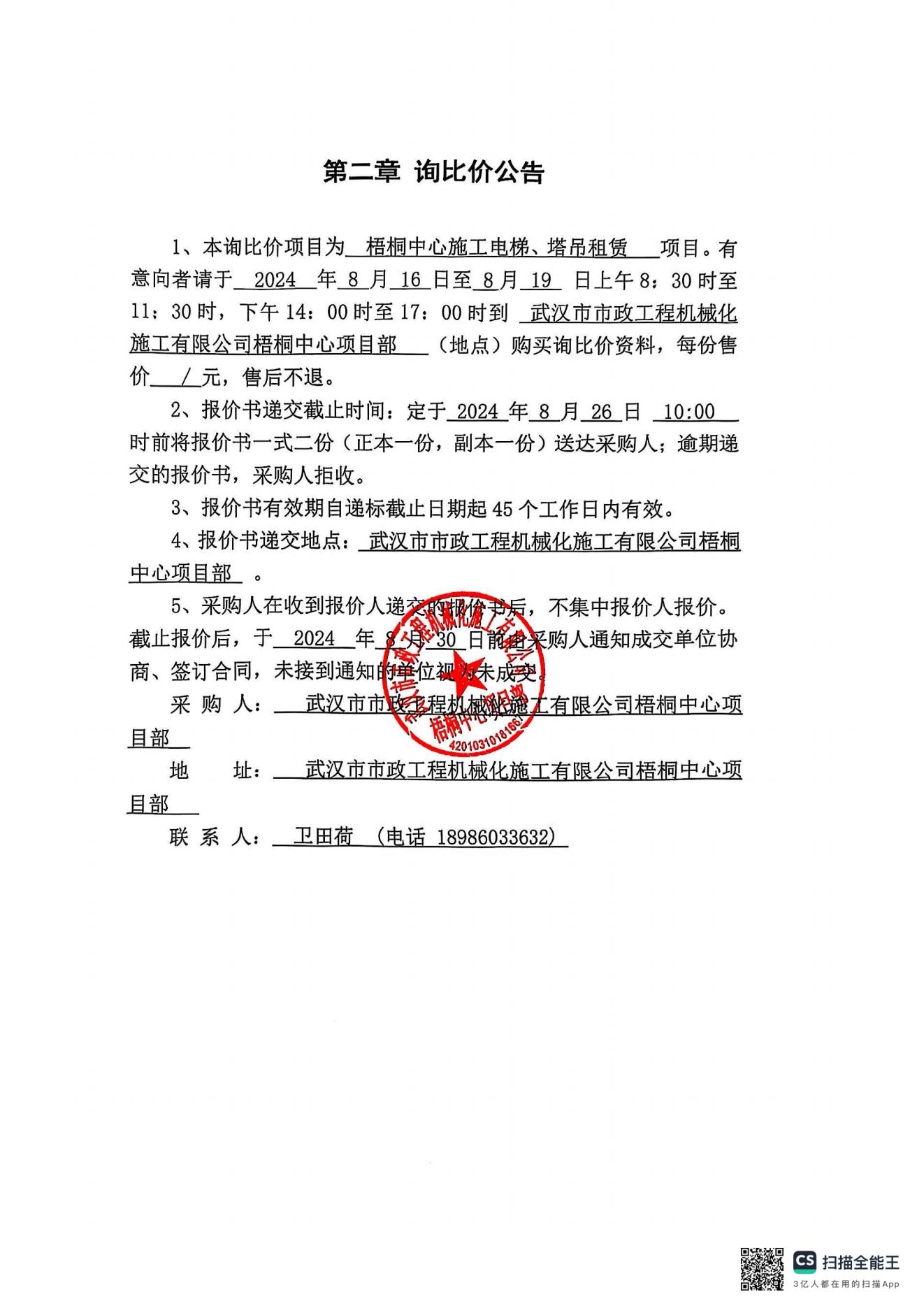 梧桐中心施工電梯、塔吊租賃詢價公告