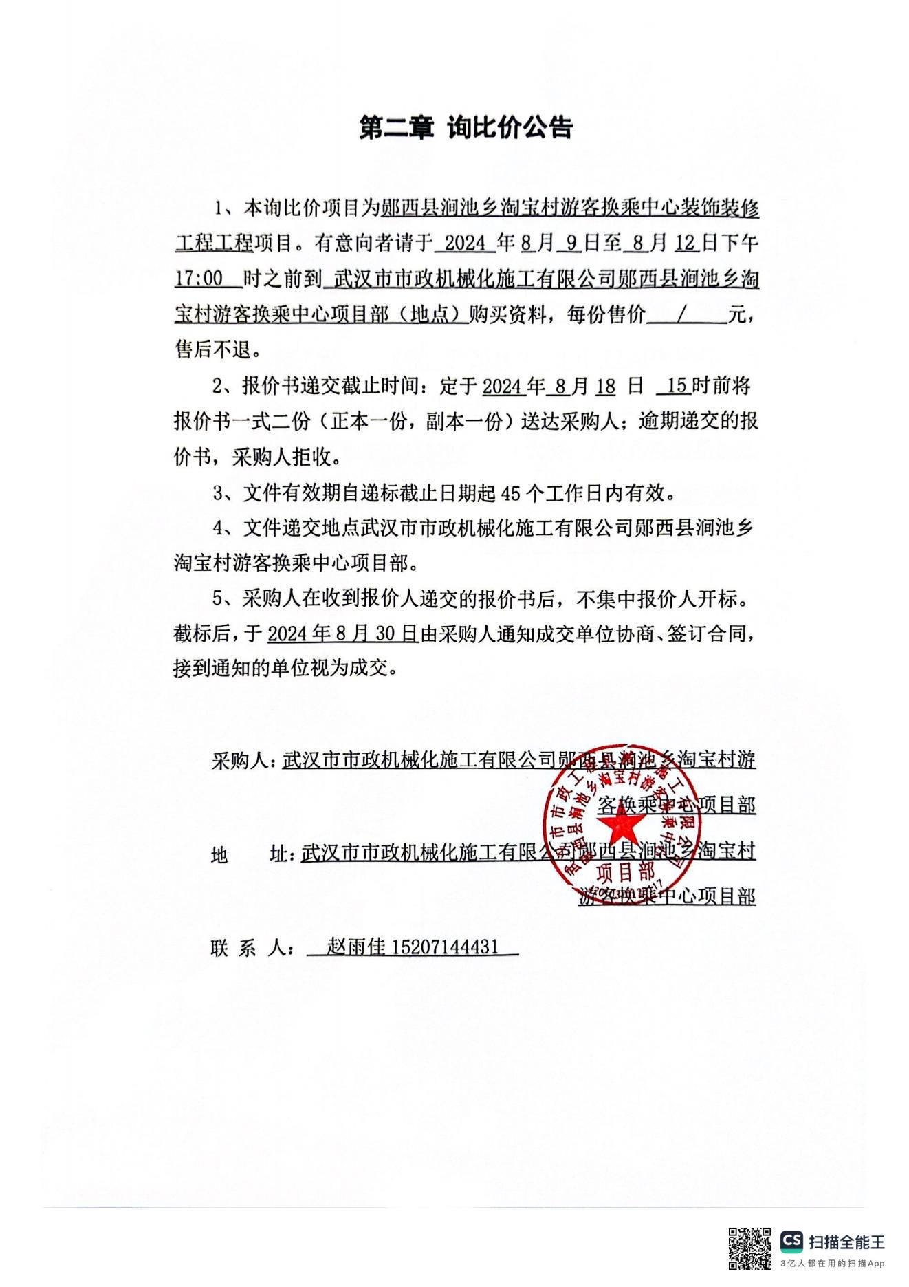 鄖西縣澗池鄉(xiāng)淘寶村游客換乘中心裝飾裝修工程詢價公告