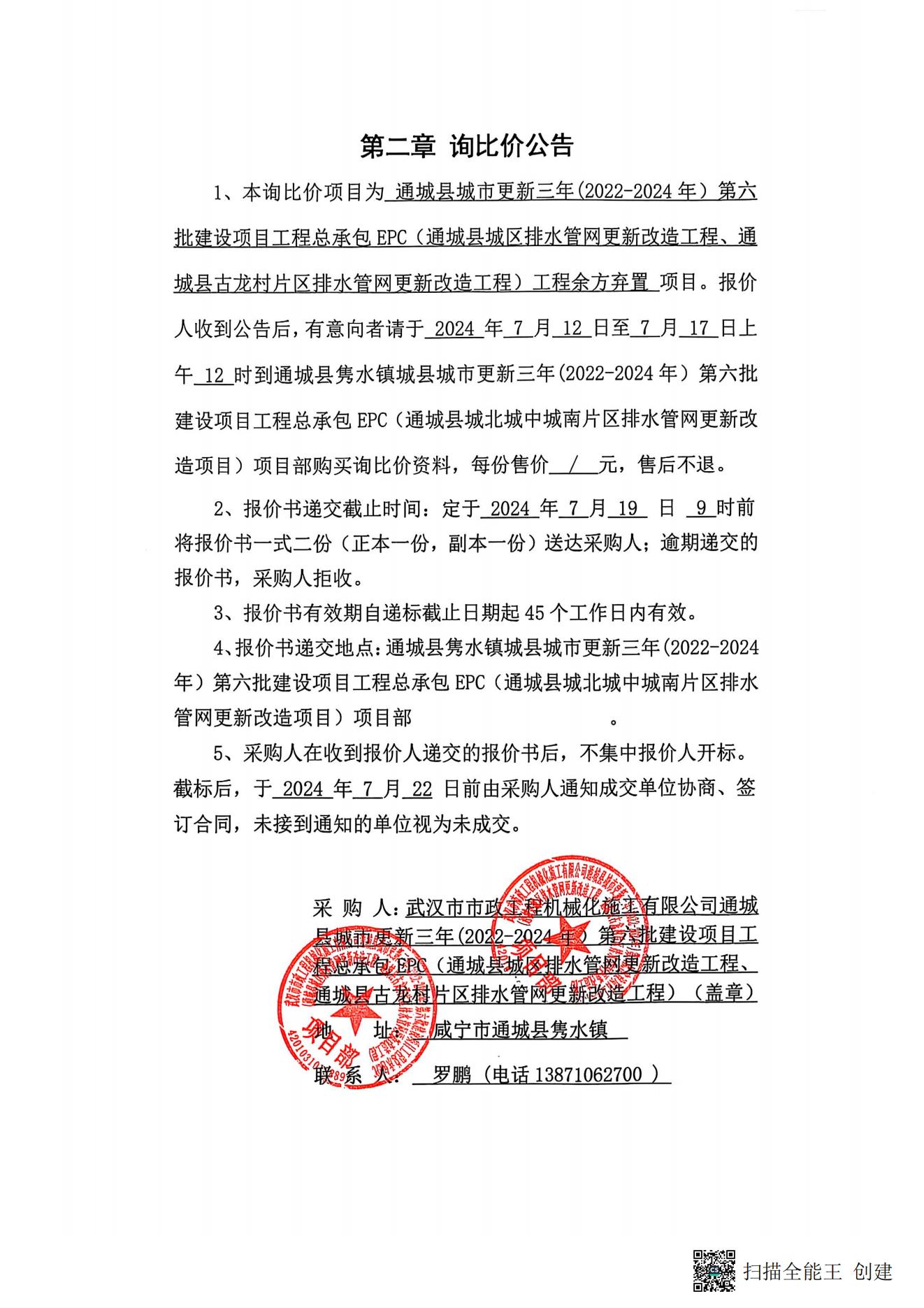 通城縣城市更新三年(2022-2024年)第六批建設(shè)項目工程總承包EPC(通城縣城區(qū)排水管網(wǎng)更新改造工程、通城縣古龍村片區(qū)排水管網(wǎng)更新改造工程)工程余方棄置采購詢價公告