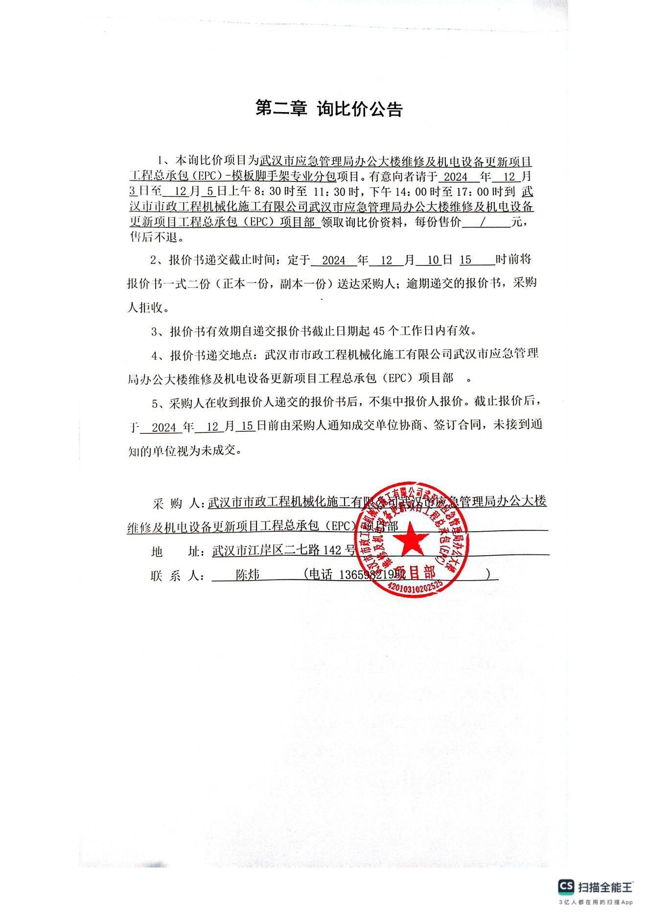 武漢市應(yīng)急管理局辦公大樓維修及機(jī)電設(shè)備更新項(xiàng)目工程總承包(EPC) -模板腳手架專(zhuān)業(yè)分包詢(xún)價(jià)公告